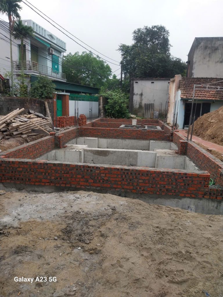 Thái Bình Decor bắt đầu thi công nhà phố cho anh Thế tại Thanh Hóa bằng việc đào móng và ép cọc, đổ móng